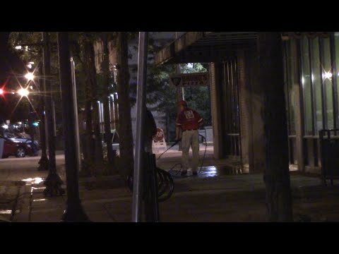 DTSB employee sprays homeless guy with water - Dtsb - Homeless guy kicked out of a parking garage and sprayed with a pressure washer by a DTSB (Down Town South Bend) employee. Looks like an assault with a ...